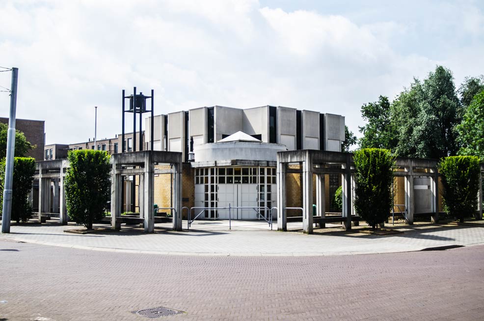 De verbijzondering van het alledaagse wordt gekenmerkt door de zuilengalerij die de plek markeert. De processie naar de offertafel wordt ondersteund door sacrale elementen zoals een cirkel, koepel, kruis, klok. Ook is de processie in het gebouw langer gemaakt door de diagonale ordening waardoor tevens grotere en kleinere ruimten ontstaan die het gebouw een speels karakter geven. Bijzonder is ook het veelvuldig toegepaste beton zoals de vierkante betoncassettes met uitgespaarde koepels in het dak van de kerkzaal. De kerk verwierf een eervolle vermelding voor de Betonprijs van 1981.
